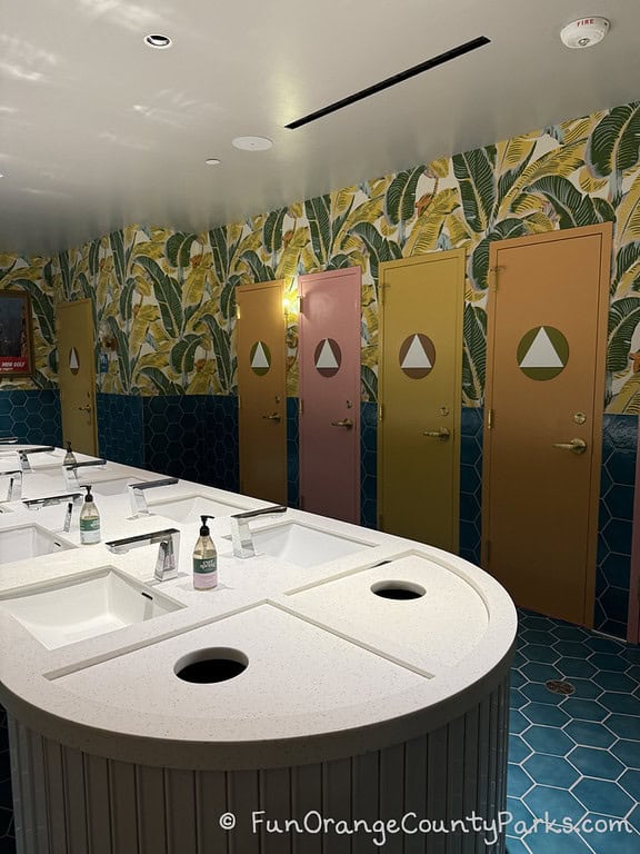 The restrooms are all gender which made so much sense! I wish all restrooms were like this. The location is almost like a Jack & Jill bathroom with one entrance opening out into the bar at the mini golf area and the other entrance opening into the lobby of the hotel area.