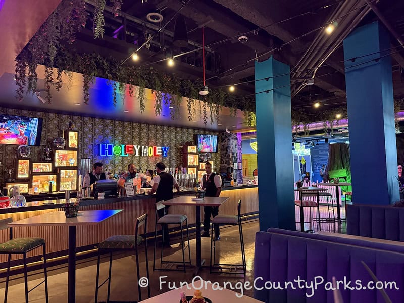 There is so much going on at the Holey Moley Golf Club & Hijinx Hotel in Irvine Spectrum that it feels like a grown-up playground. It's all fun! You can read this and be prepared OR just go and be surprised. (But probably make reservations first!)