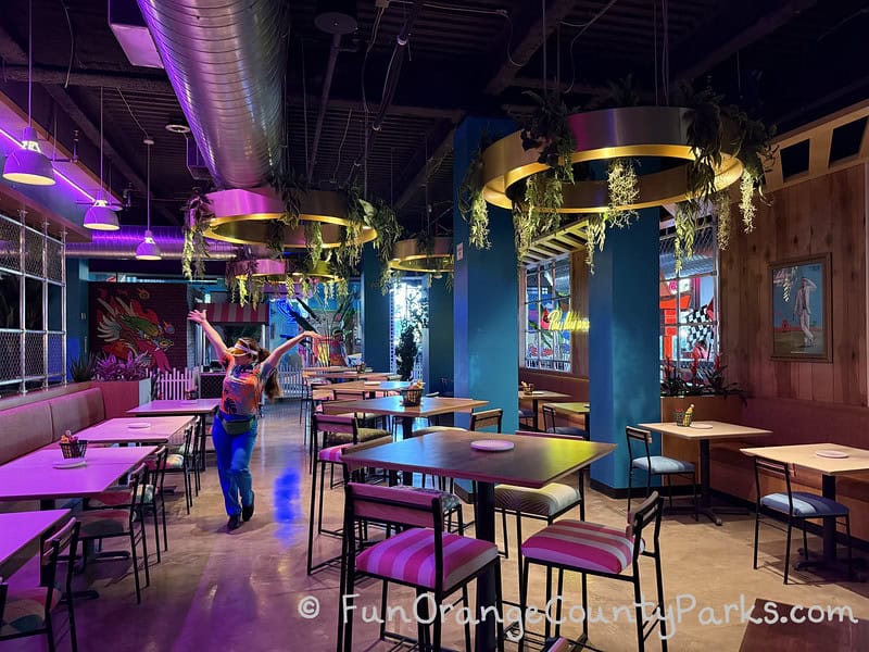 For those who might be easily overstimulated, it's a bursting-with-color and loud-with-music space. There are quieter (by comparison) corners where you could take a break, like near the entrances or the front desk area.