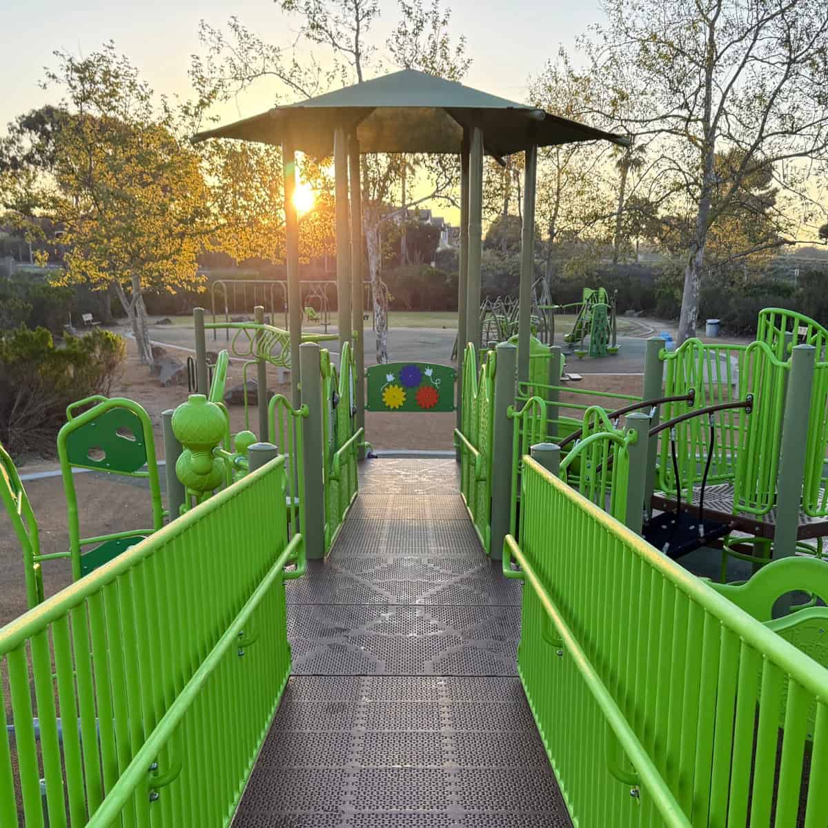 San Miguel Park in Newport Beach was renovated to have accessible features, mostly on the 2-5 year old portion of the playground.