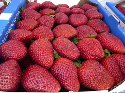 Nope. The best way is fresh from the fields. Straight from the farmers. Or should I say, straight from the farming families like at the Carlsbad Strawberry Company. You buy your half flat (3 baskets) or full flat (6 baskets), and then nothing's stopping you from eating at least one (or two or three) in the gravelly parking lot with a view of the fields. They are warm, full of sunshine and juicy enough to stain your shirt and drip on the ground.